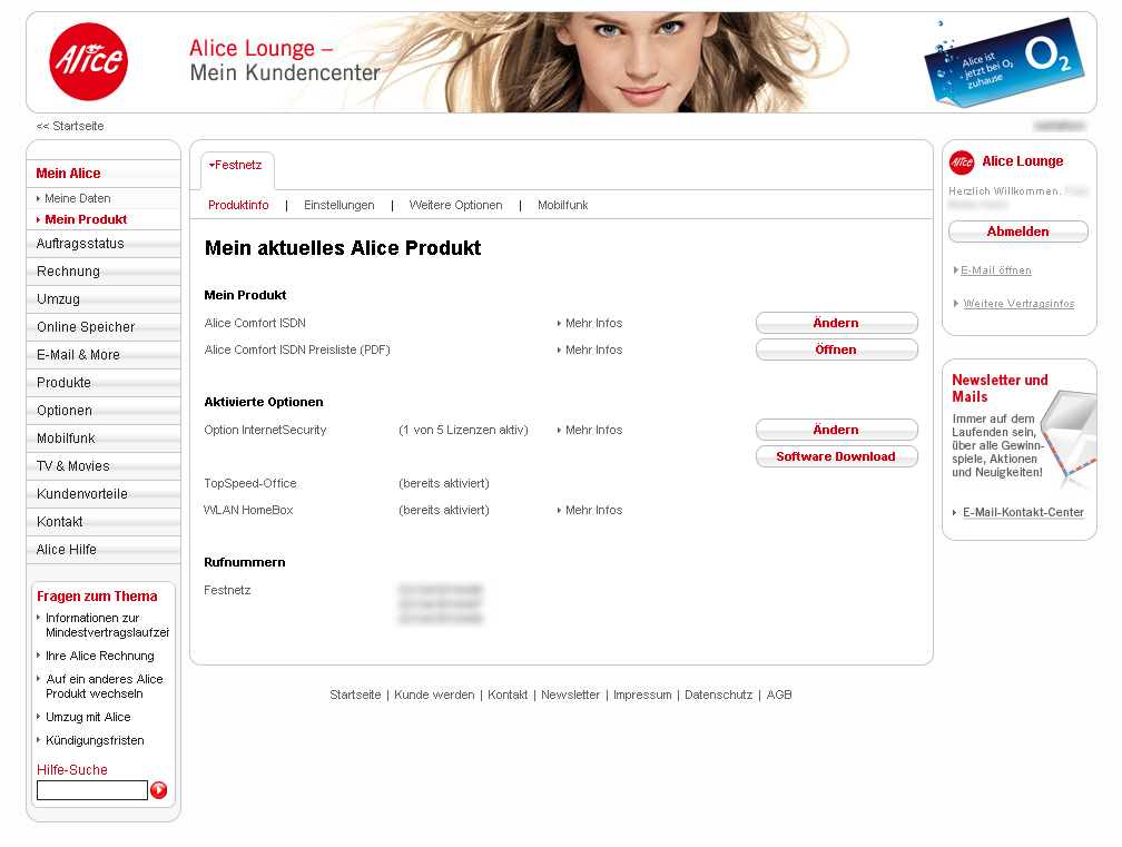 Bitte immer angeben: Tarif (Analog/ISDN/S/M/L), DSL-Modem von Alice, ggfs. Router, ggfs. Telefonhardware.