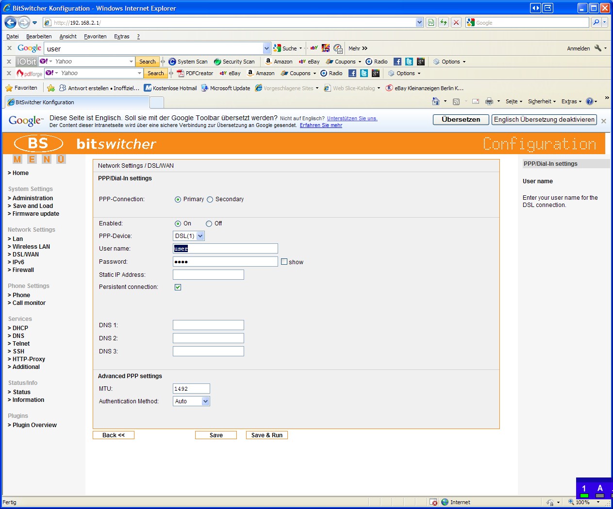Falls Nein, musst Du Dich durch die Anleitung von Bitswitcher durchwühlen, da ich weder Speedport, noch Bitswitcher habe, kann ich keine weiteren Hinweise geben.