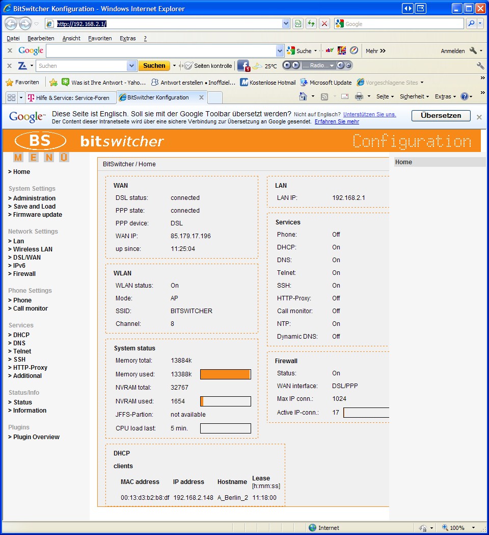 Möglicherweise lag ich ja falsch..!? Unter BS komme ich AUCH im LAN (nun) nicht in's Net :( .
