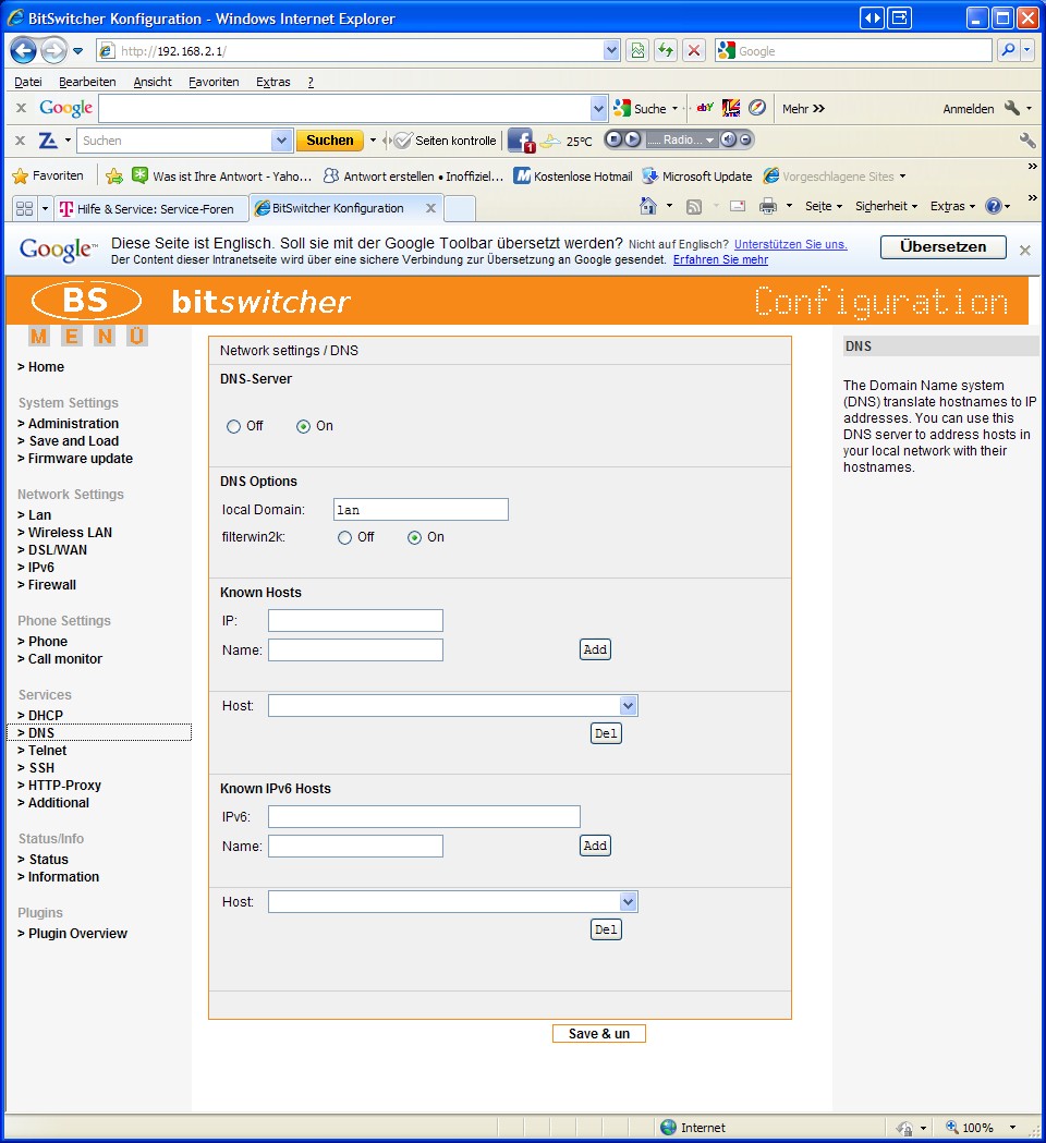 Kannst du bitte mal einen Screenshot von Services -> DNS einstellen?