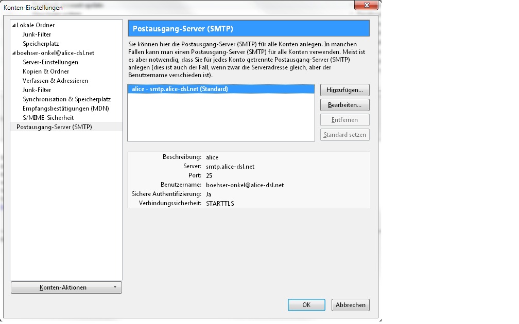 hallo, ich habe mir vor kurzen win7 installed und dort gibt es ja kein outlook express. nun habe ich mir thunderbird runtergeladen und das klapt auch soweit, nur das senden der email will nicht so ganz :/