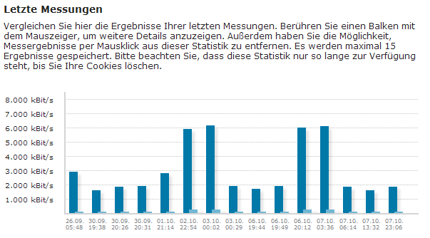 Nachdem mein Anschluss nach der Messung des Hotline Mitarbeiters resetet wurde und sich dadurch die Geschwindigkeit wieder auf 6.000 kbit/s normalisierte, ist sie mittlerweile übrigens wieder auf 1.734 kbit/s zusammengebrochen. (Stand 08.10., 06:12 Uhr)