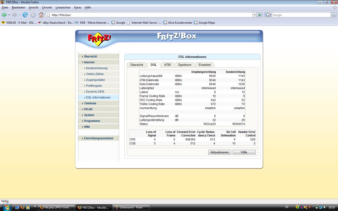 1.Anruf bei Alice mit Weiterleitung in die Störungsaufnahme und Messung der Leitung,mit einem nicht gerade netten Techniker------>ohne Erfolg.