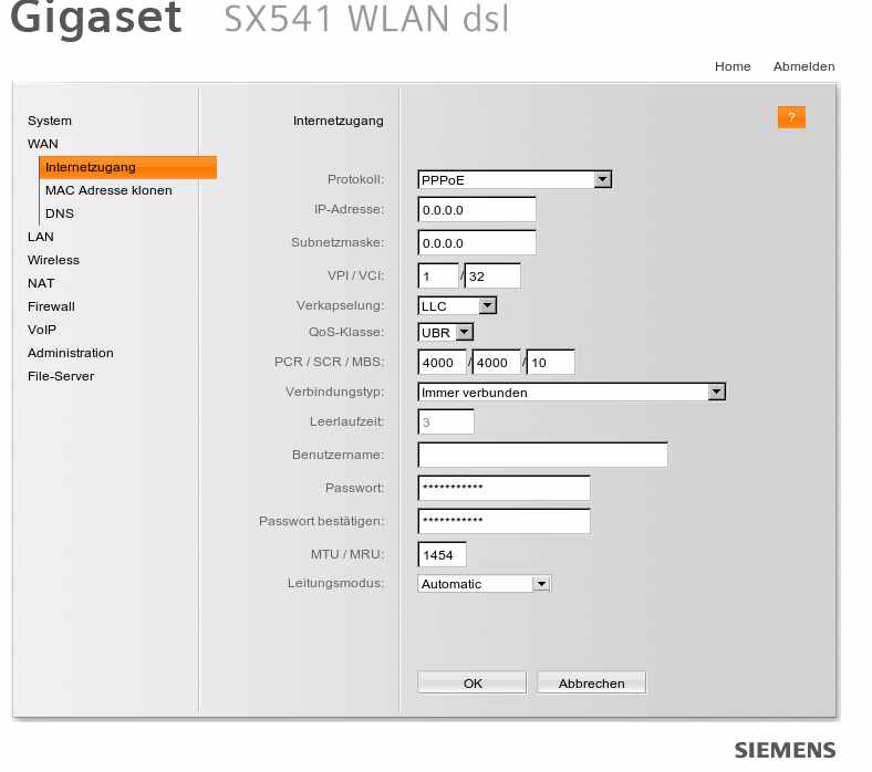 Der Benutzername ist ja leer??!? Und setz die MTU mal auf Auto oder 1492
