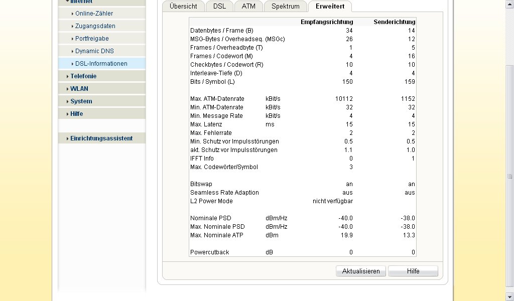 Wenn Du Lust hast kannste ja mal ein paar Screenshots von deiner Fritz.Box senden (vor Allem das Spektrum wäre interessant).