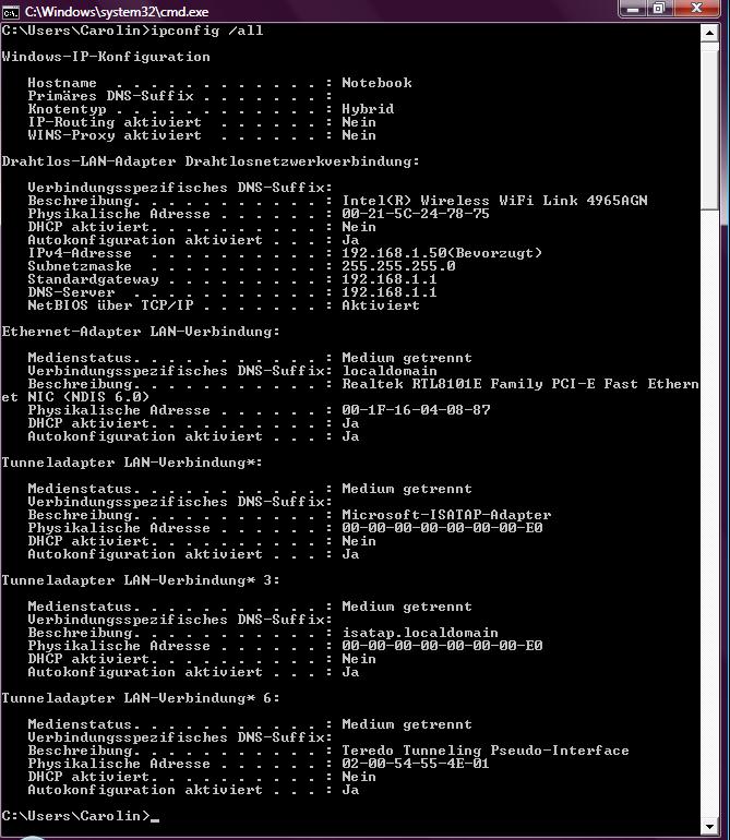 Soll ich dir mal die ipconfig/all Übersicht schicken?