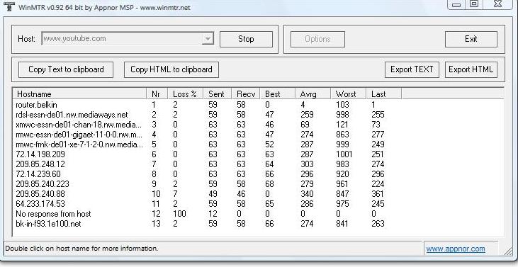 Als es wieder mal sehr langsam wurde, habe ich WinMTR gestartet.