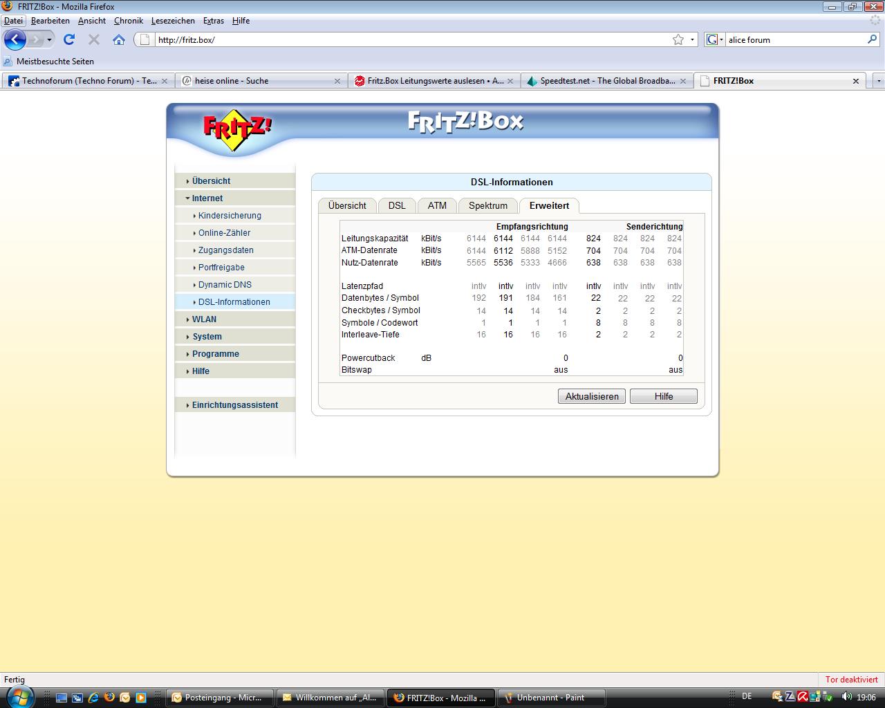 Downstream nur mit 6000kbit/s? Probleme mit DSL.