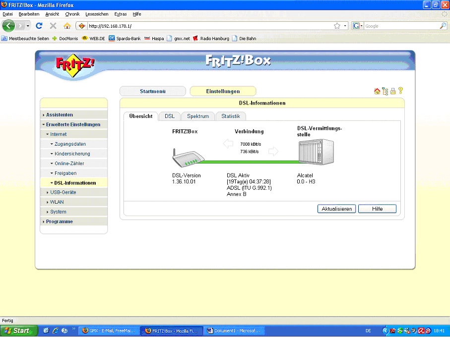 Schnarch langsam bedeutet, dass es ewig dauert bis Seiten sich aufbauen und manche es gar nicht tun. Mit dem Alcatel Modem das vorher an dem Anschluss war ging alles mit 'normaler' DSL Geschwindigkeit. Schneller Seitenaufbau, keine Probleme beim Versenden größerer Dateianhänge.