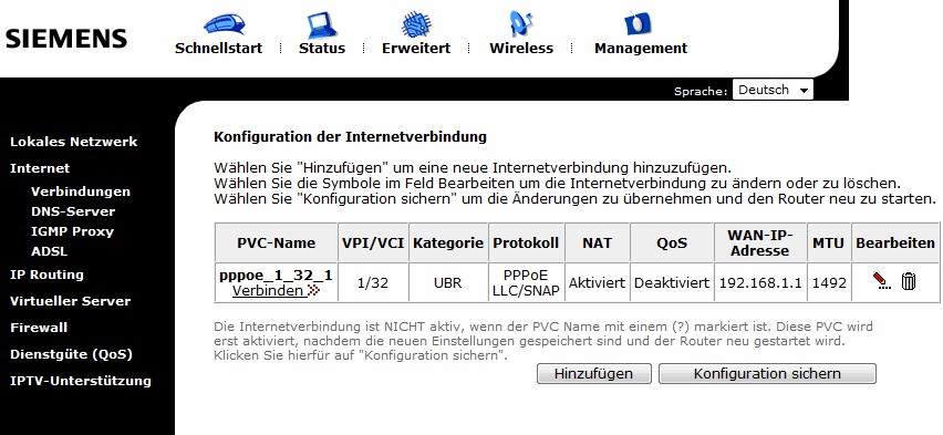 Falls du Probleme hast msn.com, microsoft.com, eventl auch ebay.de aufzurufen, dann hast du die MTU Size nicht auf 1492 eingestellt.
