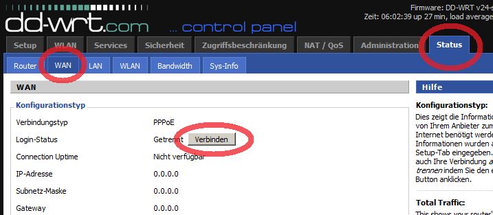 WAN nach der Einrichtung manuell verbinden