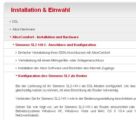 In der Alice Hilfe findet man nun ganz offiziell die Zugangsdaten zum Siemens SL2 und eine Anleitung zur Routereinrichtung.