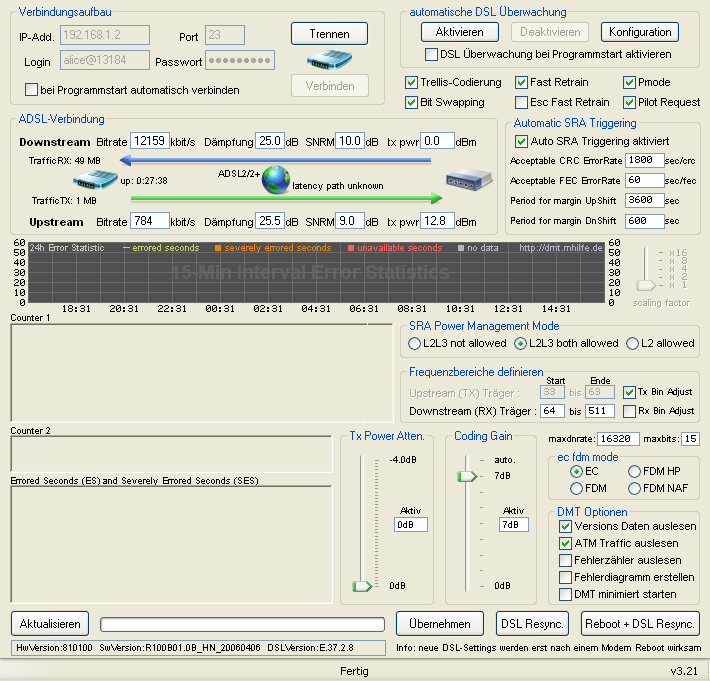 Schau mal in die FAQ (viewforum.php?f=41) und lies Dein Modem mit DMT-Tool aus: