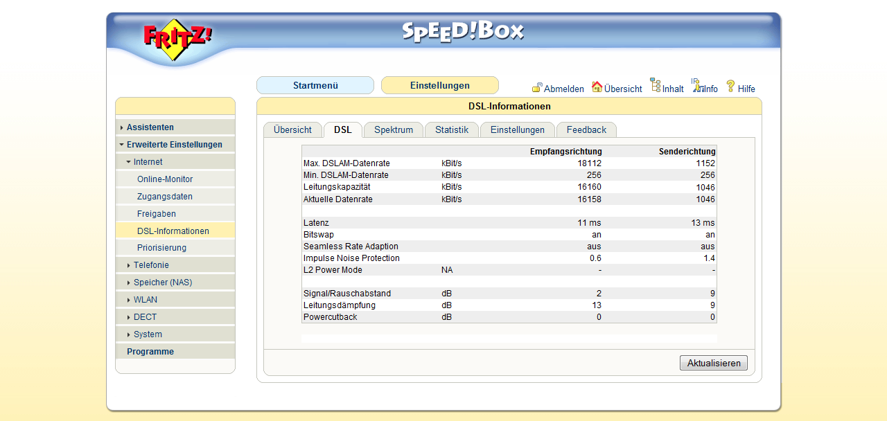 FBEditor hatte ich mir auch schon angesehen, allerdings bezweifle ich stark, dass die Leitung so lange stabil bleibt. Schau dir mal die Fehlerraten an, 2dB SNR ist schon recht heftig :) . Viel Erfolg beim weiteren Schrauben.