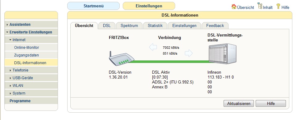 Die Leistungsdaten meiner Leitung habe ich mit einer Fritz.Box gemessen: