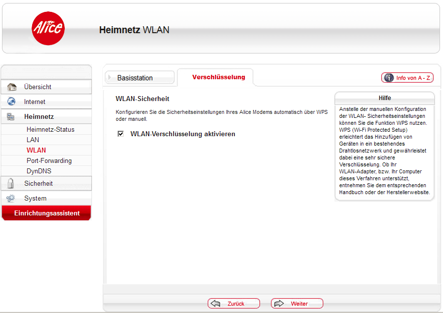 Tab "Verschlüsselung" (unter >"Heimnetz" >"WLAN")