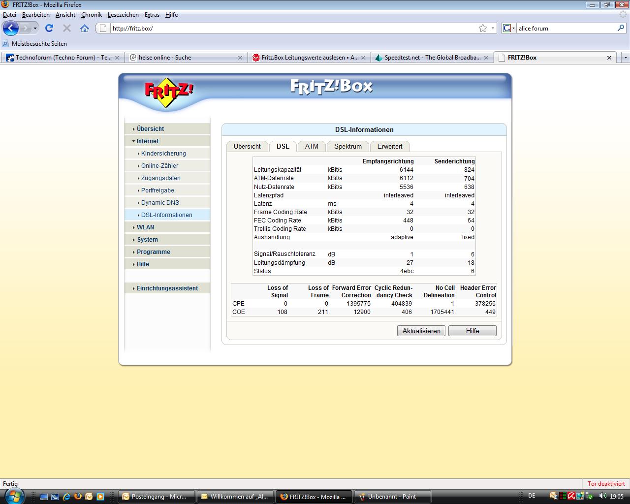 Downstream nur mit 6000kbit/s? Probleme mit DSL.
